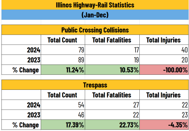 To view the most current statistics, please visit the Federal Railroad Administration/ FRA page.