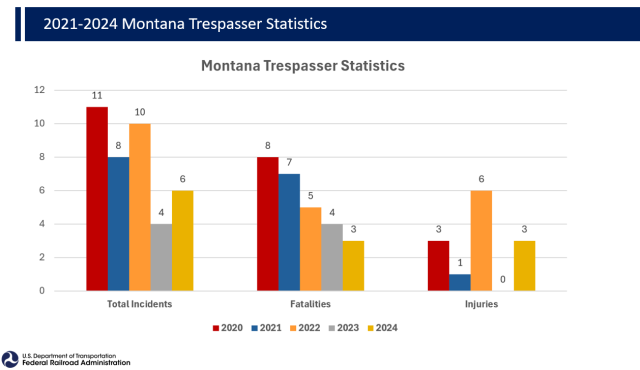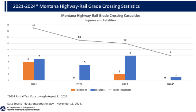 Montana Rail Crossing and Trespasser Incidents 2021 through August 2024
