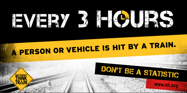 Remember the sobering statistic: Every 3 hours in the USA, a person or vehicle is hit by a train. You can help us spread the word and make your community safer by becoming an OLAV!